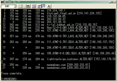 tracert www.maqmakmac.com (Windowsマシンである)