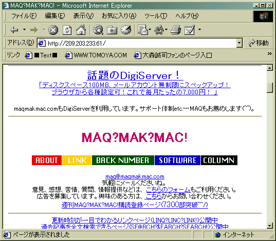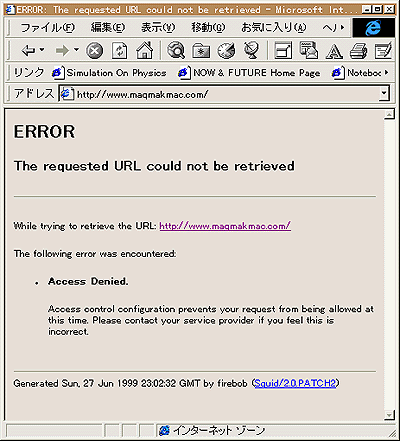 へのリンクがある。ところが、彼の職場からはそのサイト、MAQ?MAK?MAC!を見ることができないというのだ。彼は会社内のLANとは別のルートでMAQ?MAK?MAC!へアクセスすることが多かったので、なかなか気づかなかったのだ。