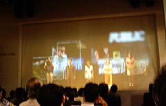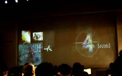|  プレゼンが終わり、スクリーンが下る。そして、キーワードが前後に映し出される。 |