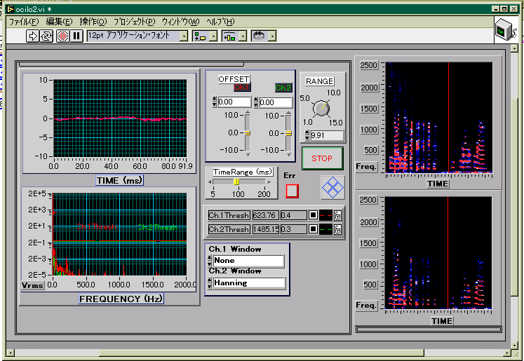 前に作った2Chオシロ&FFTアナライザーに時間vs周波数グラフの表示機能を付けたい。そうすれば、もしも音声解析に利用するならば、声紋分析もできる。また、振動解析ならば、周波数変化を簡単に調べることができる。こういったものが簡単に作れるのはLabViewの素晴らしい所だ。