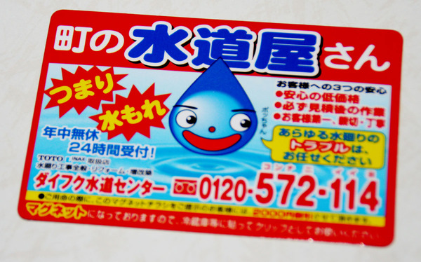 比較的平らな磁石、たとえば、「カード型磁石」の着磁状態を見てみると、意外な「丸い磁石」の「着磁」分布と同じように、N極とS極が何層にも(厚み方向とは直交した方向に)重ねられたバームクーヘンのような具合に着磁されているものが多い。たとえば、右の写真のような(広告を兼ねた)カード型磁石の着磁状態を見てみると、やはり、幾重にも重ねられたバームクーヘンのような具合に着磁されている。