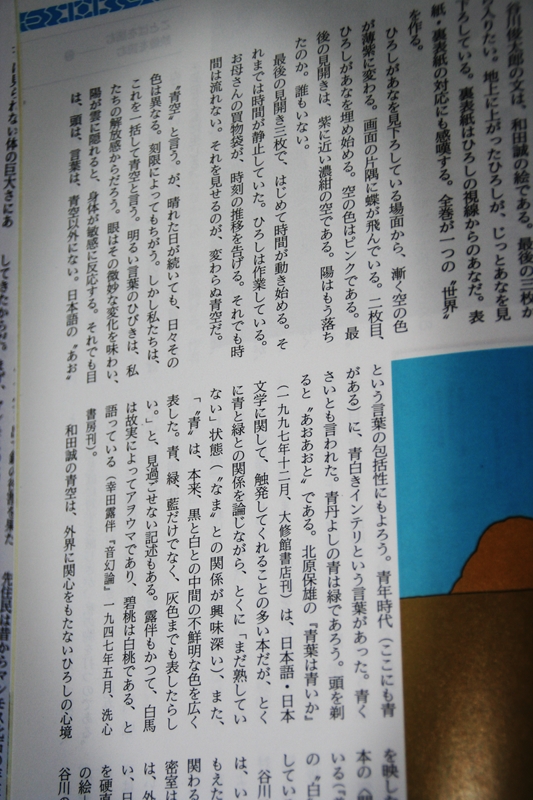 幸田露伴の「音幻論」で言及されているという「"青"は、本来、黒と白との中間の不鮮明な色を広く表した。青、緑、藍だけでなく、灰色までも表したらしい」という一節をGRAPHICATIONの中で読む。