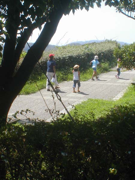 ひとたび、こんな山脈縦断コースに出たら、後は自動的に興味深い色んな風景に、自動的に出会うようになります。たとえば、右の写真のように、横浜のみなとみらい……つまりはかつての未来的な風景が、ベットタウンな住宅地の隙間から見えてきたりもします。