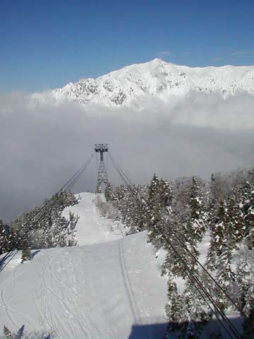 職場四人で日帰り新穂高温泉スキー場。いつ来てもここは日本一のスキー場だー(ある意味)。今日はこのスキー場でスキーをしていた人は私たちを含めトータル9人。あと、ボードが二人(下のゲレンデで)。つまり、トータルで十人くらいしかいない。これはホントにホントである。そして、「スキーしてる人がいるぞー」と山を見に行く観光客に指さされること数知れず…