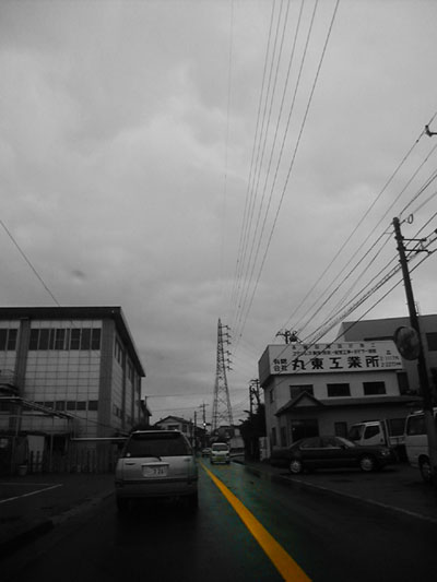 白黒の景色の中で妙に目立つ「ボーダーライン」(