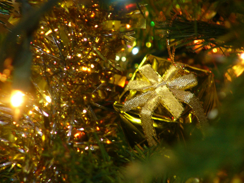 夜のエスカレーターホールの一番上にあるクリスマスツリー。金色のクリスマスプレゼントを指にとってみたり、銀の玉の向こうの世界を眺めてみたり。そんなことをしてる内にどうやらシャボン玉が降ってきたらしい。