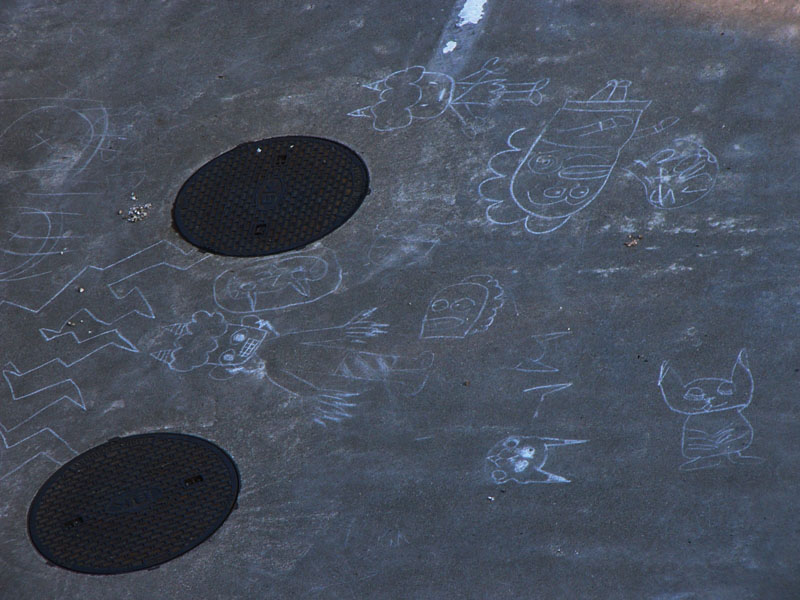 らくがきを何人かの子供がしていたみたい。駐車場でらくがきをするのが好きな子供ってたくさんいそうだからなぁ。あぁ、そうじゃないか。大人になったってそんなこどもみたいらくがきをするのが好きなおとな、楽しそうにらくがきをするおとなはたくさんいるもんね。そんな「おとな」が目に浮かぶようだなぁ…。