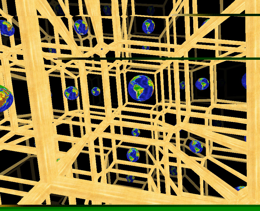 色々な宇宙空間をリアルタイムレンダリングで眺めることができるアプリケーション。エッシャーが描いた世界のような不思議な世界。