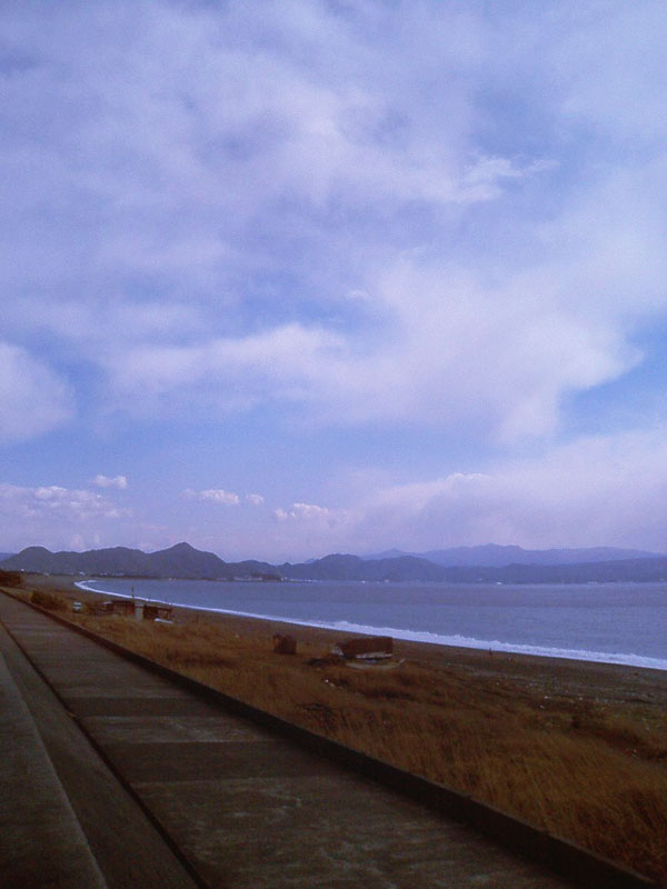 そして、もしかしたらこのスヌーピーをゴミ袋に入れることに躊躇した誰かが、防波堤の上に彼を座らせたのかもしれない。その後、風が強いせいかあるいは他の何かのせいでスヌーピーが防波堤の上で寝転がって空を見た、というところかな。