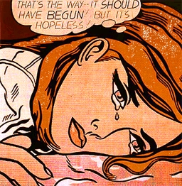 SECRET HEARTSと、それをアレンジしたRoy LichtensteinのHOPELSS。並べてみると、こんな感じ。確かに、同じようでずいぶんと違う。  from 布施英利 「マンガを解剖する」