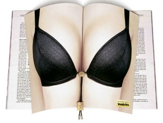 まさに「付加価値」をつけた印刷広告の、「寄せて上げる広告」 寄せて上げるワンダーブラの雑誌広告。凄いブラの広告と言えば、赤青立体メガネを使った「ブラジャーの立体広告」も面白い。トリンプとワンダーブラの立体コマーシャル対決…。