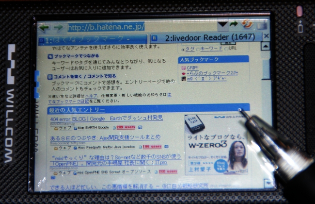 というわけで、今日買ったばかりのウィルコムの新携帯 W-ZERO3 esをネタに、平林 純@「hirax.net」の科学と技術と男と女にウィルコムの新携帯 W-ZERO3 es は使えるか!?を書いてみました。この手のものを買ったのは、"PalmPC"以来です。"PalmPC"は、その後、出世魚のように名前が変わり続けましたが、あんまり「出世」していない気がするのは、私だけ…でしょうか。