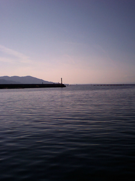 椅子の前を、自転車に乗った人や、木々や、防波堤の影だけが動いていく。