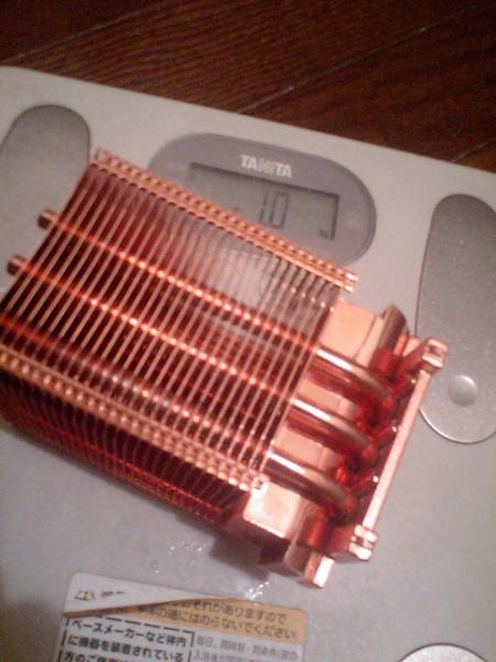 道具箱をあさっていると、古いCPUファンを見つけた。銅で作られた、赤銅色に輝き、手に持ちつとズッシリ重いその(CPUファンの)冷却フィン部分の重さだけを(体重計で)量ってみると、ちょうど1kgである。つまり、材料費として300円ナリという計算になる。少し前の、高価格ノートや高価格PCなどでは、銅などが豪勢に使われている。