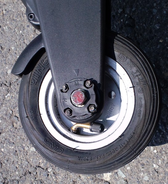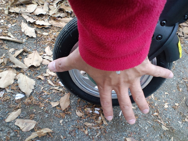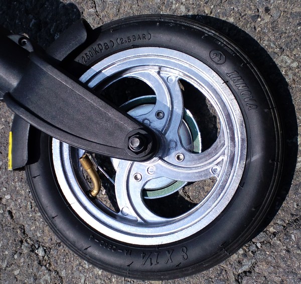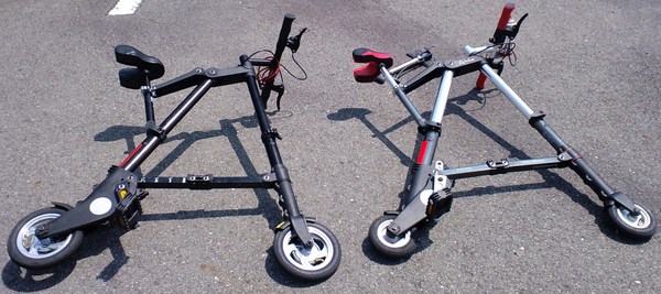 少なくとも、今回比べた純正A-bikeは「剛性」「直進性」において、パッチモンに比べてかなり劣っていた。前輪・後輪の直進性、そしてフレームから後輪への剛性感が、全然違うのである。それは、単に個体差かもしれない。しかし、細かな部分の設計が違うことにも原因があるように見えた。それは、たとえば、6インチと8インチというタイヤ径の違い、あるいは、キャンバー角の設計の違いである。そしてまた、同じ寸法・作りのようで、実は結構違う各パーツの剛性・設計の違いである。