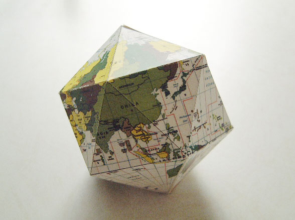 というわけで、UVインデックスの世界地図から作り上げた「UVインデックス地球儀用"正二十面体の展開図"」の一例が下図になります。