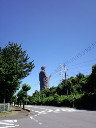 自転車でツーリングをしている途中、遠くに見える林の上に仏像の頭が見えたような気がしました。そこで、その方向に、自転車を走らせてみたのです。しばらくすると、時折、景色の向こうに仏像の姿が見えるようになり、次第にそれが立っている大仏であることがわかってきました。