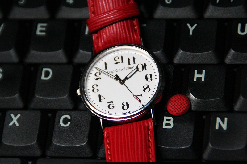 ケータイも、腕時計(右の写真は、今回のグロッシー・レッドのThinkPad Edge 13”とは違う、ThinkPadのキーボード上で撮影したものです)も、靴だって自転車だって手帳も…身の回りのものほとんどを赤色デザインで選んでいる…という赤色大好き人間なので、このグロッシーレッド版のThinkPad Edge 13は、「人を楽しくさせる道具」のように感じます。
