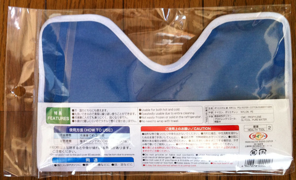 水分を含んだ吸水性ポリマーをアイマスク状にした(そしてそれを柔らかな繊維で包んだ)もので、冷蔵庫で冷やせば冷え冷えになるし、あるいは、電子レンジでチンすればホカホカになって、それをかければ疲れた目の周りのを休めることができる、という優れものです。それでいて、値段はもちろん税抜きなら100円ポッキリ、です。「蒸気でホワホワと目の周りを温めてくれるホットアイマスク