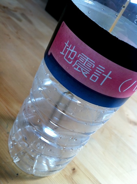 透明なペットボトルとヒモ(のようなもの)と重りになるものを探して・手に入れ、紙に「地震計」とでもラクガキしてペットボトルに貼り付けてみれば、あなただけのデスクトップ地震計のできあがり、です。 余震が続く中「めまいと地震」を区別しかねているのなら、息抜きにこんな工作をしてみれば、少し楽しくなるかもしれません。