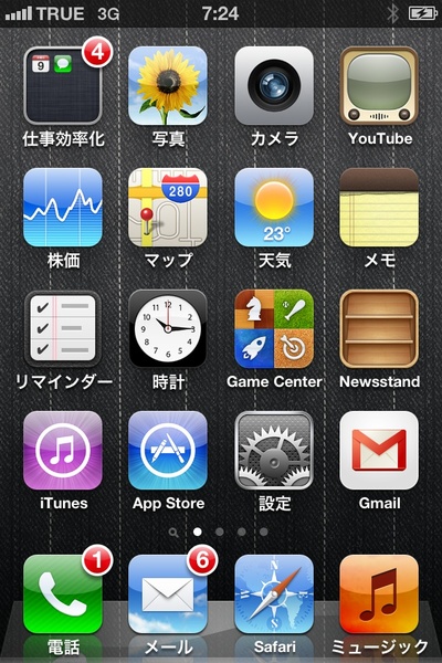 早速、カットしたSimを iPhone4 に差し込むと、右上にアンテナマークが立ち並ぶ横に”TRUE”と表示され、ネットワークに接続されました。ただし、iOS5 ではAPNなどの設定画面が表示されなかったので、iPhone構成ユーティリティでAPN/ユーザ名/パスワードを設定したプロファイルを作成し、iPhoneにインストールするとネットワーク接続できるようになり、"TRUE"の横に"3G"と表示されます。