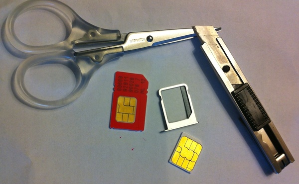 というわけで、そんな”目印”を頼りに線を引いた上で、ハサミでチョキチョキとSimカードを切ると、いともたやすくSIMカット手術が終わりました。