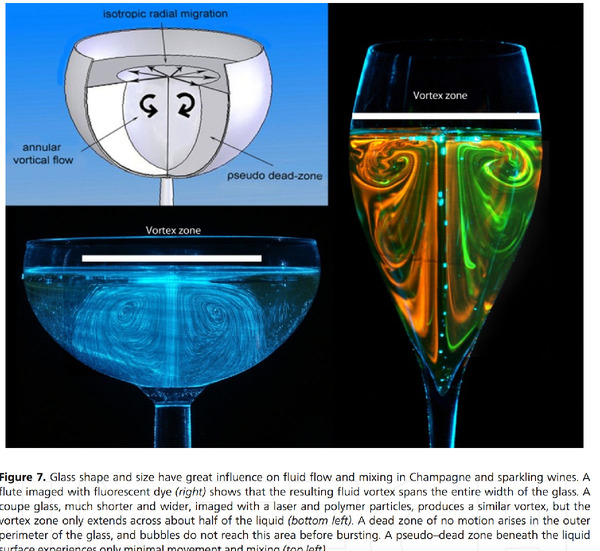 普段はシャンパンなんて飲まないにも関わらず、クリスマスが近づくと風物詩的に少しだけ飲んでみたくなる。そんな時期に眺めてみるととても面白そうな「シャンパンに関する計算や可視化解説」があった。このConvective Mass Transfer in a Champagne Glass (Fabien Beaumont, Gérard Liger-Belair and Guillaume Polidori)が楽しいのは、登場する計算式が比較的簡単でわかりやすいということもあるけれど、何よりシャンパンが注がれたグラス内から立ち上る気泡を可視化したさまがとても美しく、その写真に思わず目を惹かれ、魅入られてしまうからだ。