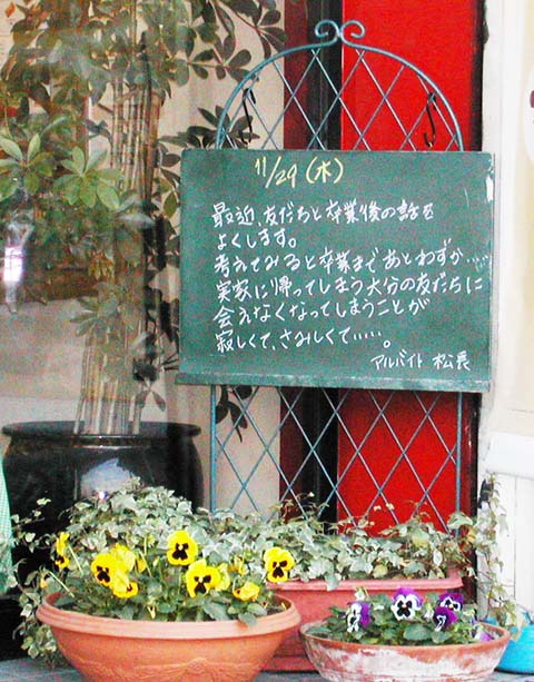 取手へ行くたび、この店の前を通るたび、いつもこの伝言版に目が止まる。