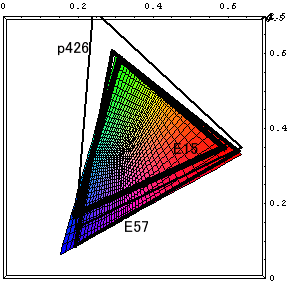 こうしてみると、大幅に出力可能な色空間が違うことがわかる。中身は同じっぽいのに、出力できる色空間は異なるのである。本当ならば、面白いことだ(どっか解析方法を間違えたかもしれないが...)。ソフト処理の違いだろうか?