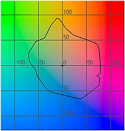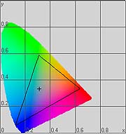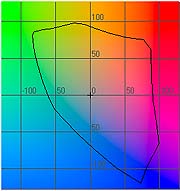 「プラズマディスプレイ EIZO FlexScan P4260」の場合も、やはり若干青・赤方向が弱い。しかし、何やら緑方向にやたら広い発色可能な領域がある。緑の大草原の画像をこのディスプレイを使って眺めてみたくなる。きっと、結構キレイなのだろう。