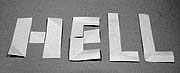 そして、まだ目の前に散らばっている残りの八つのカケラを話し手は拾い、それをゆっくりと並べながら「残りの罪ある悪しき人々は地獄へ行く」と話す。すると、その言葉のままに、残りの紙飛行機のカケラはいつの間にか姿を変えて"HELL"という文字に変わっていくのである。