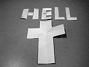 そして、さらにいくつかの情報源を辿っていると、他とは少し変わった終わり方の話を見かけた。その話の中でも、全部で九つの紙のカケラの内の一つはやはり十字架になり、「飛行機に乗っていたほとんどの人は天国に行く」というところまでは他の話と全く同じだった。しかし、その話の中では残りの小さな八つのカケラが形作る文字が"HELL"という文字ではないのだった。