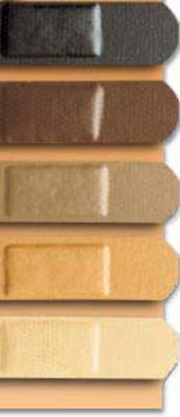 さまざまな「肌色」を持つ色々な人がいるから、色々な色を持つ絆創膏 がある。黒い色から明るい褐色まで何種類かの色がある。それぞれの色だけで買うこともできるけれど、さまざまな色が詰まっているバラエティーパックを買のも、カラフルで楽しそうだ。