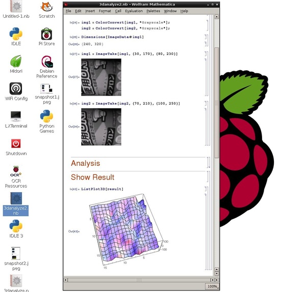 2台のUSB WEBカムを並べた簡易「ステレオカメラ」を作り、Raspberry Pi に繋ぎ、Mathematica for Raspberry Pi で視差(距離)分布を(ものすごく大雑把に)測定・解析するコードを書いてみました。まだまだ、思ったような動作をしてくれないですが、5000円くらいのコンピュータや機材で、思いついたことを簡単に楽しめるのは、なかなか素敵です。