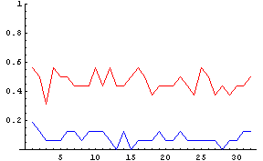 もちろん、これは256人という少ない人数だからこんなに大きく比率が変動するわけである。しかし、今回は「つまりある特定の血液型の人間が集まる」かどうかを調べたいのである。つまり、ある少人数の人間達を考えたときに特定の血液型の比率が多くなることがあるかを調べたいのだから、考える人数は少人数で構わないわけだ。