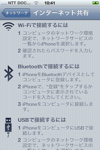 iPhoneのOSを4.3(8F190)にバージョンアップしました。すると、iPhoneのネットワーク接続を他機器から使うことができる「テザリング」機能が「インターネット共有」という名前に変わっていました。