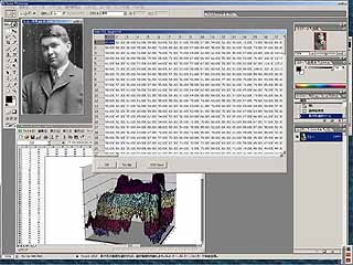 これは画像の値を表計算方式のセルで表示させ、その表示されたデータをExcelでグラフにしたりすることができる。つまりは、画像データを解析して、色々な表示方式で立体化することが素晴らしくも簡単にできるようになるのだ。もちろん、フリーのソフトウェアでもScionImagePCやImage Toolなどで似たようなことはできるが、表計算方式のセルで表示という点において、このCSVfは使い勝手の点で勝っているハズである。