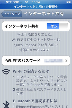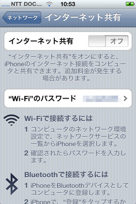 iPhoneのOSを4.3(8F190)にバージョンアップしました。すると、iPhoneのネットワーク接続を他機器から使うことができる「テザリング」機能が「インターネット共有」という名前に変わっていました。