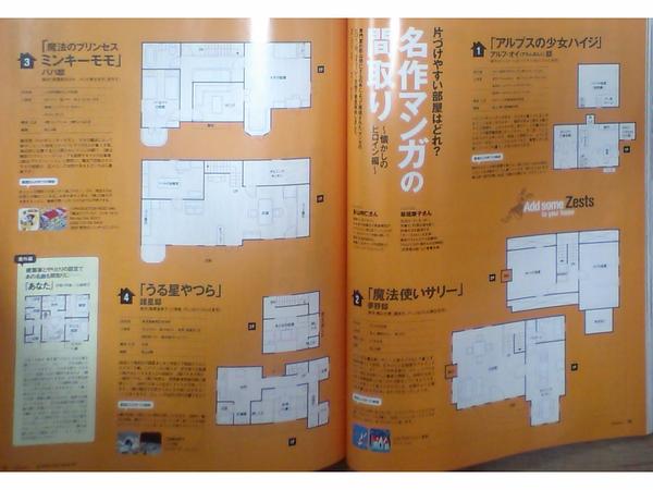 雑誌 Lucere ! (ルチェーレ) 2008年 12月号(ルチェーレ)を読んでいると、『片づけやすい部屋はどれ?「名作マンガの間取り」~懐かしのヒロイン編~』という記事がありました。「アルプスの少女ハイジ」「魔法使いサリー」「ミンキーモモ」「うる星やつら」といった、名作マンガのヒロインたちが住んでいた家の間取りと、その家(部屋)は片づけやすいのか?といったことを考察している記事でした。