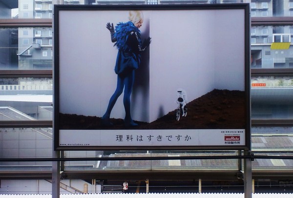 遠くのホームでひとり列車を待っている人がいる。その人の方向へと、小さなロボットが自転車に乗って向かおうとしている。自転車に乗るロボットを、ひそかに、青い衣装をまとった女性が優しく見守っている。