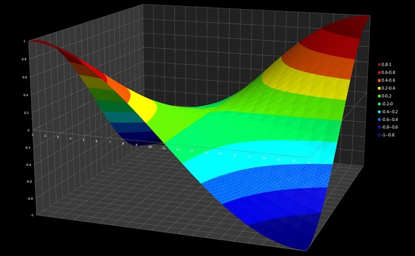 というわけで、下のチャートは(Excel 2010になっても未だ今ひとつ綺麗に色を仕上げることができないのです)Excel 2010の等高面グラフを本マクロを使って、綺麗なスペクトルチャートにしてみた例です。エクセルのチャートを、思いきり綺麗にカスタマイズできて、自由自在に眺めることができるソフトウェアを、明日にでも作ってみようと思います。近く、夏恒例のスプレッドシートを使ったシミュレーション実習を行うので、ありとあらゆるエクセル技を、これから少しまとめて行こうと思います(もしも、ひと味もふた味も変わった、けれどとても楽しく華麗なエクセル科学本に興味のある編集者の方がいらっしゃいましたら、ご連絡頂ければ幸いです)。