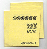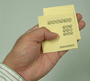 両端を動かすだけで、パタパタと自然に開いたり折り畳まれていくようすがよく判ると思う。|  | 実際の大きさは掌にすっぽり隠れるサイズ。 裏表紙は表紙を裏返したデザイン。それは、考えたり思ったりしたことにはきっと表も裏もあるだろう、という気持ちの現れなのである。   |
