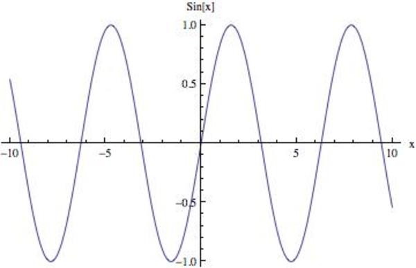 Plot[Sin[x], {x, -10, 10}, AxesLabel -> {"x", "Sin[x]"}]