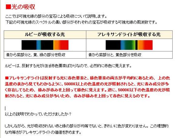 「色を変える"宝石"ガーネット」の光吸収スペクトルを探すうちに、こんなページやこういったページに出会いました。こういうページを眺めていると、単純な色名では表現できない宝石の光吸収スペクトルを(数式処理プログラムの)Mathematicaで関数にして、さまざまな照明の中で、宝石が外に見せる色を計算するライブラリを作りたい、と思ったりします。