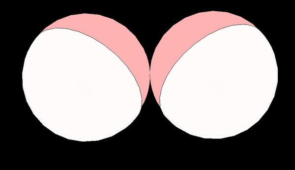 ちなみに、こういう状態の胸の陰影をイラスト風に単純化すると、右の画像のようになります。陰影の境界が、胸の先っぽを一番上にして、そこから左右下方にぶらさがるような状態です。…そう、意外にバストを描いたイラストで多く見られる表現です。