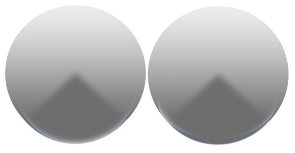 実際に、直交2方向の上部左右に光源(+ごくわずかな環境光)を配置し、正面からからバストを眺めてみたのが右の画像です。このエントロピー最大条件にすると、手前方向に迫りくる立体的なバストを、力強く感じられるはずです。盛り上がってナンボの胸の魅力が非常に高まることがわかります(動画による表示例はおっぱいとエントロピー(動画比較と式変形過程)参照のこと)。