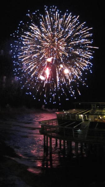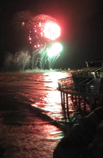 方向的には、この花火の先、海の向こう150kmくらい先に、イギリスがあるはずだ。…といっても、地球は丸いから、いくら障害物が無かったとしても4kmくらい先までしか見通すことはできない。