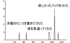 では、三人の登場人物A子 : 「瞬間」的に燃え上がるタイプの女の人達の間で繰りひろげられる色々な「出来事・きっかけ」と、それにより発生する「恋する心」を「恋のインパルス応答」を用いて計算してみた。その結果、C男とB子がカップルになれば「ほのぼの」とした幸せな生活をしそうだ、というところまで考察した。