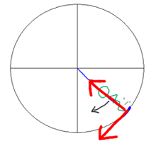 ブランコが上にきたあたりで立ち上がった場合 ![]() → ブランコの動きはどんどん小さくなる 「なんてこったい、遅くなっちまったぁ。」 |