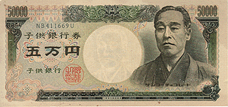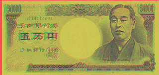• (B) 子供銀行券五万円子供銀行ケンコーチョコレート、印影、大蔵省印刷局製造
